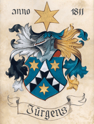 Wappen der alten, ursprünglich aus Norddeutschland stammenden Familie der Jürgens. Verbreitung auch in Süddeutschland und österreich (selten) erwähnt 1811 durch die aus Lübeck stammende Familie des Thomas Jakob Jürgens.